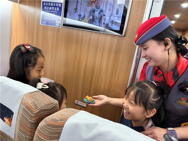 (戴莉)在2025年这个充满欢声笑语的五一国际劳动节,西安客运段动车四队西成2组值乘的D1973次列车,从古城西安北缓缓启程,向着天府之国成都东疾驰而去。这不仅仅是一次普通的旅程,更是一场专为小朋友量身定制的“童趣盛宴”。
