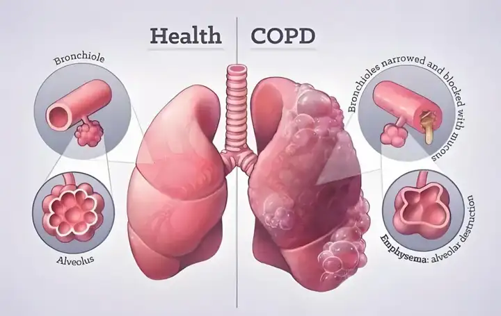 慢性阻塞性肺疾病(简称“慢阻肺”)是一种高患病率的慢性疾病,在国内超过1亿患者,是我国第三大死亡病因。其特征包括呼吸困难、咳嗽和咳痰等症状,主要是由于气道和/或肺泡的异常导致持续性气流阻塞。在漫长的患病过程中,易出现急性加重,治疗窗口窄,且患者往往伴有肺间质异常,甚至肺纤维化,极易引起呼吸衰竭,以致死亡。目前,针对慢阻肺尚无有效的根治方法,只能通过吸入药物来长期缓解和控制病情加剧。一旦发展成为肺纤维化,现有治疗手段无法逆转呼吸功能进行性降低,导致寿命缩短增加死亡的风险。