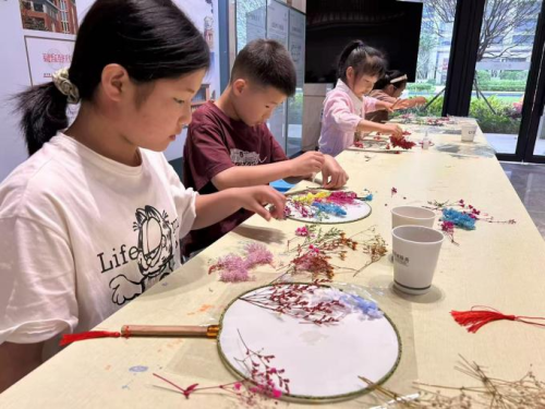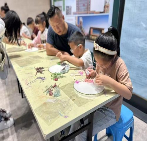 泉州晋府诚园·团扇DIY:以“执扇寄情”为灵感,亲子携手在素面团扇上绘制水墨兰花、题写诗词。孩子们将“妈妈最美”“春风不如你”等告白融入扇面,赠予母亲作专属节日礼。一位女儿羞涩道:“希望这把扇子能替我给妈妈带来清凉和快乐。”