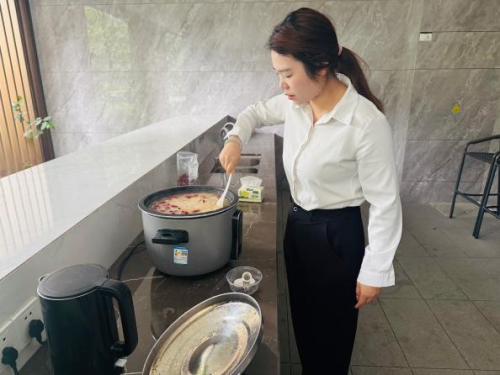 柳岸晓风·“慢火细熬”感恩粥:小业主在管家指导下亲手熬制养生粥,佐以手写食谱赠予母亲。“以前都是妈妈给我做饭,今天我想让她歇歇”,童言童语让现场暖意流淌。