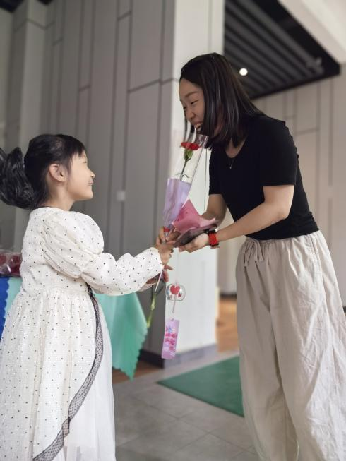 母亲节清晨,星海江筑、东湖数字小镇、书香长乐、海棠映月的管家们化身“温情信使”,为归家的母亲送上定制花束。花束中藏着孩子们提前写下的卡片:“妈妈是我的超人”“我永远爱你”,稚嫩笔迹让许多业主湿润眼眶。书香长乐的一位妈妈感叹:“本以为节日只是自家的事,没想到整个社区都在为我们创造感动。”