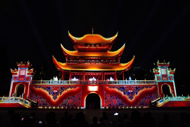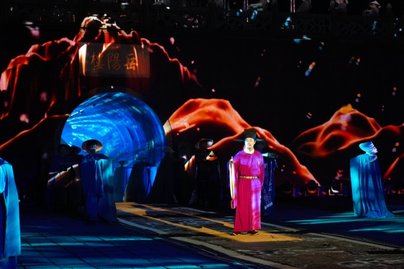 作为岳阳楼景区沉浸式文旅IP首作,由湖南省演艺集团总承制的《今上岳阳楼》,秉持“不破坏、不重建”的理念,最大限度保留园区原貌,以光为笔、以影为墨,借助潜藏式投影、全息影像、3D Mapping、无线数控等先进技术手段,将岳阳楼主楼及其周边景观转化为一处处“可游、可赏、可入戏”的动态文化剧场,让游客在每一次转身、每一个角落都能触碰到叙事的温度与诗意。