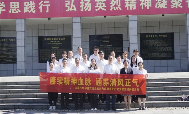 为深化党建引领,传承红色精神,厚植清廉文化根基,近日,农发行临湘市支行党支部与华容县支行党支部联合开展“赓续精神血脉,涵养清风正气”主题党建共建活动。双方党员干部通过红色教育、廉政学习、阵地观摩与经验交流,推动党建与业务深度融合,凝聚高质量发展合力。