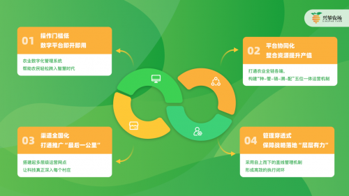 兴攀打通农业全链各端,构建“种-管-销-溯-配”五位一体运营机制: