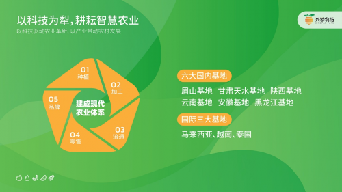 兴攀农业深知,现代农业不仅关乎生产效率,更承载着生态责任与社会价值。在“农业+科技+平台”模式驱动下,兴攀正全面推进智慧农场、数字基地、品牌农业的战略落地,着力打造一个集种源培优、数智管理、场景消费、绿色金融于一体的农业生态闭环。