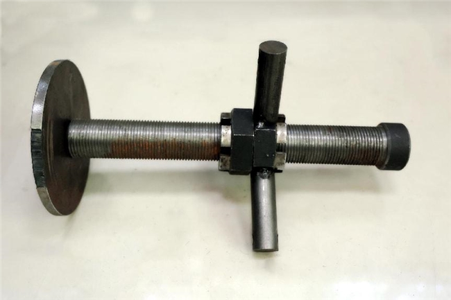 他仔细研究车床和需加工钢管的外形、尺寸,精准测量确定几个关键位置后,找来一块废钢板和几根废旧圆钢,通过焊接、车削等一道道工序,精心打造出由丝杆、固定盖板、螺母及定位盘组成的钢管料头切断定位工装。