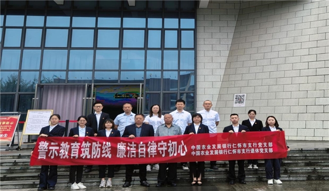 为深化党风廉政建设,近日,农发行贵州分行仁怀市支行组织全体在职党员与退休党支部老党员共赴仁怀鲁班警示教育基地,开展“警示教育筑防线,廉洁自律守初心”主题党日活动。
