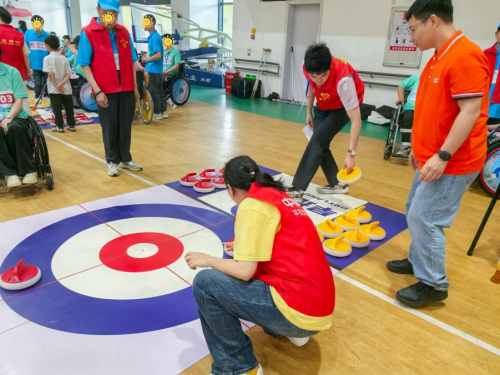 比赛开始后,平安产险志愿者们迅速转换角色,化身“全能助手”。在入口处,平安产险志愿者耐心引导运动员,轻声询问他们的需求,并帮助引导他们到各自的赛场;赛场边,志愿者举着引导牌,用手势和笑容安抚候场运动员的紧张情绪;当运动员投掷冰壶时,志愿者们自发组成“人形护栏”,既维护现场秩序,又随时准备为运动员提供帮助。“助残不是俯身搀扶,而是并肩同看一片星空。”平安产险志愿者小张说道。