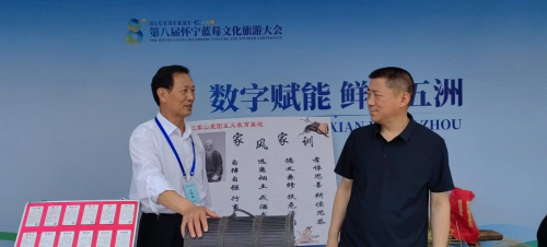 独秀故里,“蓝”以忘“怀”。5月20日,第八届怀宁蓝莓文化旅游大会开幕式在“安徽蓝莓第一镇”黄墩镇独秀乡村振兴示范区蓝莓广场隆重举行。来自全国各地的专家学者、企业精英、特邀嘉宾等1000多人参加了大会,省、市、县等主要领导出席大会。同时,组织近百家富有怀宁县本土特色的农产品、非遗产品等进行集中展示。江家山庄非遗产品“娃儿粉”和禁毒宣传受邀参展。