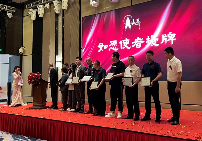 在如愿使者授牌仪式上,董事长张立勇与总经理谢磊共同登台,为首批九位来自全国各地的如愿使者授予象征荣誉与责任的专属铭牌,来自广东的企业家代表范修炼董事长、来自北京的律师代表王秀芳女士、来自成都的证券基金经理代婷婷女士等杰出代表位列其中。这些来自不同地域的行业精英获此殊荣,彰显了社会各界高端精英人士对如愿公司的高度认可,相信如愿公司在这些志同道合的社会各界精英的支持下,一定会蒸蒸日上、稳健致远。