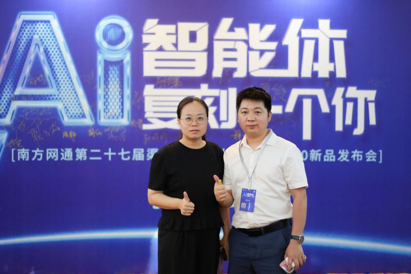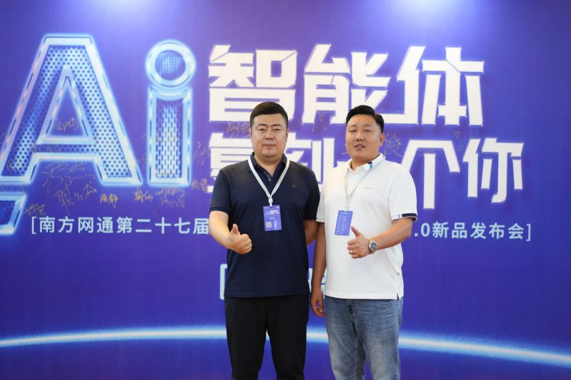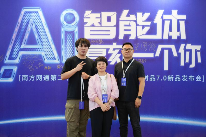 南方网通集团董事长兼CEO费勇先生、南方网通副总经理及全国渠道负责人梁金凯先生、研发总监朱金燚先生、产品总监曾文先生等公司高层及全国优秀的代理商伙伴们齐聚一堂。共同探讨在AI智能体时代的业务拓展带来新的思路与机遇。