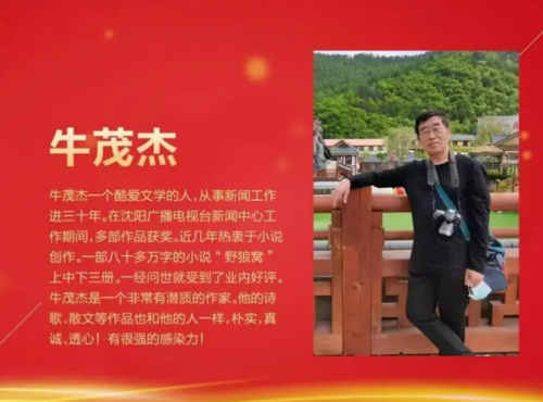 作者简介:牛茂杰,本名牛懋杰。1955年生人,原沈阳广播电视台新闻中心主任记者。撰写、采写的长篇记者调查、大型录音报道、录音短消息等荣获国家级、省级奖项30余次,发表报告文学、散文、新闻稿件30余万字,散见于《辽宁日报》《中国环境报》《沈阳日报》《沈阳晚报》《法治与文明》《今晚报》《辽宁青年》等。曾先后被市委、市政府授予抗击非典先进个人荣誉称号,被市委宣传部评委沈阳市十佳记者。