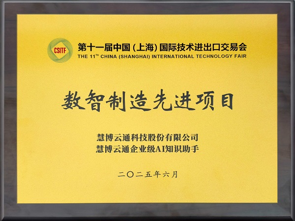 13日下午,上交会参展项目先进性评选在会场隆重举行,慧博云通AI企业级知识助手凭借强大的技术支撑能力和丰富的落地案例成功获评第十一届上交会“数智制造先进项目”,进一步证明了慧博云通AI应用能力的先进性和市场认可度。