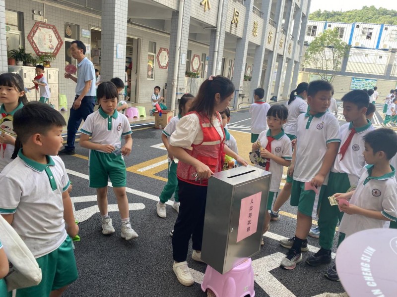 活动现场,由学生亲手制作的义卖摊位成为一道亮丽风景。手工饰品、书画作品、二手书籍等义卖物品琳琅满目,学生们化身“小小推销员”,热情地向来往师生介绍商品。不少家长和村民也驻足选购,将一份份爱心投入筹款箱。