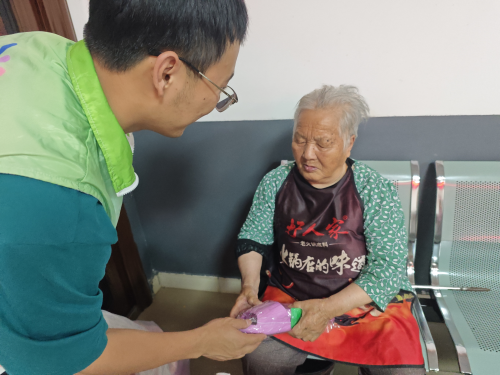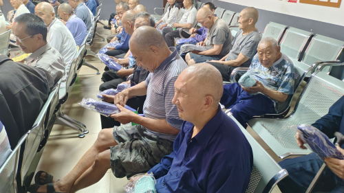 活动现场,社工通过示范教学,耐心带领老人进行手指操、拍拍操,激发老人活力,现场一片欢声笑语;联合文兴镇卫生院为老人开展血压测量、健康咨询等体检服务;同时,为每位老人送上精心准备的夏日凉拖,以细致入微的关怀,温暖老人身心。