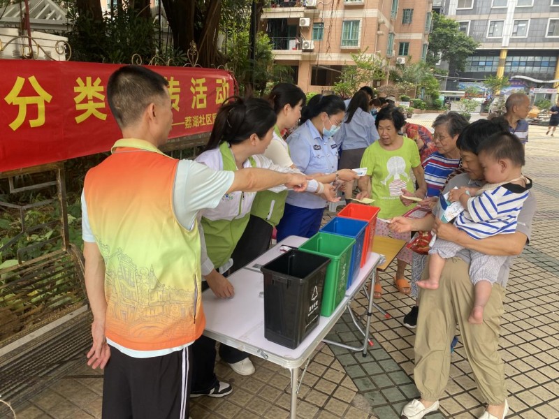 此次活动在荔湖明苑小区举行,在现场工作人员的组织下,通过摆摊设点、入户宣传和站桶引导等方式,向居民普及垃圾分类知识,倡导居民积极配合做好源头分类。周边居民通过参加垃圾分类模拟投放的游戏,了解了垃圾分类的基本方法和资源回收的重大意义。这种寓教于乐的方式,吸引了孩子们积极参与,助力他们从小养成垃圾分类的良好习惯。