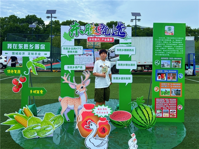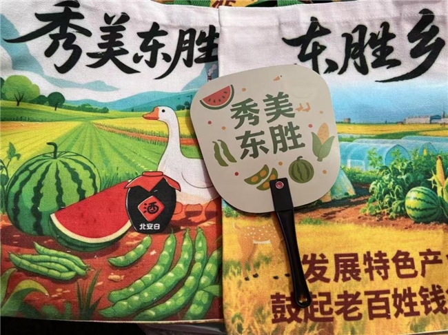 此次文化节不仅是一场欢乐的聚会,更是展示区域发展成果的重要窗口。活动现场东胜乡精心设置的党建打卡墙和产业打卡墙,生动呈现了党建引领下在产业发展等方面取得的丰硕成果。同时,还为现场观众准备了文创手提包、扇子等文创礼品,将文化节的欢乐氛围传递到每个人手中。