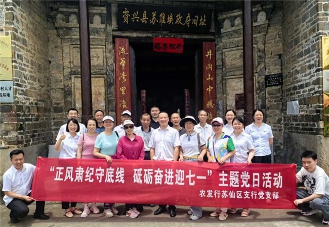 近日,农发行郴州市苏仙区支行党支部在“七一”前后开展了“正风肃纪守底线 砥砺奋进迎七一”系列主题党日活动,组织党员干部到郴州市廉政警示教育中心,沉浸式接受警示教育,前往资兴市苏维埃政府旧址追寻红色足迹,让全体党员在典型案例中筑牢廉洁防线,在红色教育中汲取奋进力量。