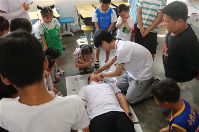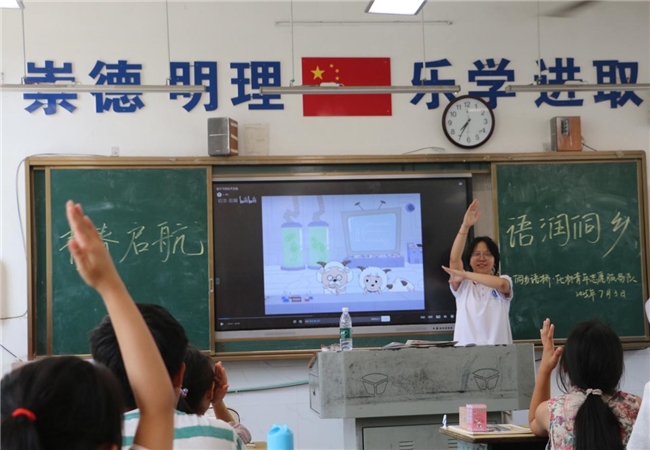 “大家知道如果不小心落水,第一时间该做什么吗?”在防溺水课堂上,志愿者用一张“落水情境图”开启互动式导入,引起了孩子们强烈的兴趣。