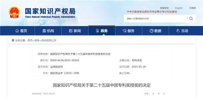 近日,国家知识产权局发布关于第二十五届中国专利奖授奖的决定,中国中药控股有限公司旗下广东一方制药有限公司申报的“一种治疗新型冠状病毒肺炎的中药组合物(ZL202010102403.2)”发明专利荣获中国专利优秀奖。此前,该专利已获2023年第十届广东省专利银奖。这是一方制药继2020年“一种中药处方全自动配药系统(ZL201610500966.0)”发明专利获第二十一届中国专利优秀奖后,再次获此殊荣。