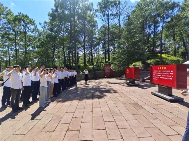 活动伊始,党员队伍开启“重走长征路”活动,从红旗水库大坝出发,拾阶而上,直至会理会议遗址,沿途上,讲解员为大家讲述了一个又一个红军长征途中的红色经典故事,让每一名党深切感受红军长征精神的伟大与崇高。在会理会议遗址纪念碑前,全体党员在领誓人的带领下,面对鲜红党旗,庄严宣誓,重温入党誓词,并齐声合唱经典红歌《没有共产党就没有新中国》,铿锵有力入党誓词、高亢嘹亮的歌声,无不表达了大家对党的无限忠诚、热爱和听党话、跟党走的坚定决心,激荡了每个党员心中浓浓的家国情怀和使命担当。