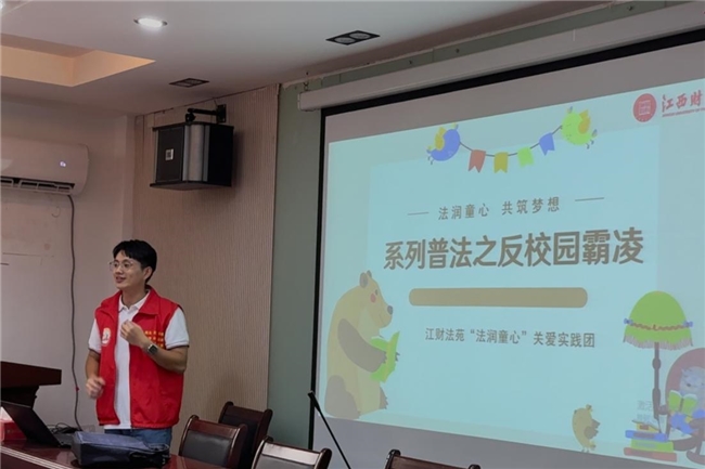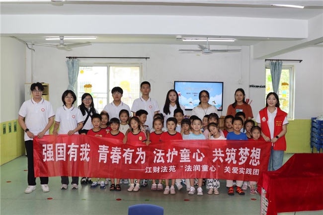 与法“童”行,筑梦远航;青春有为,挺膺担当!此次暑期社会实践活动,是江财法苑学子践行“强国有我”誓言的生动实践。他们发挥法学专业所长,以创新互动形式传递法治精神。未来,江西财经大学法学院将继续以专业之力践行为民服务的初心,让更多青少年在法治的阳光下自信成长,让“强国有我”的誓言在童声中愈发嘹亮!
