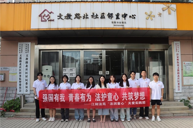 为深入贯彻落实青少年法治教育工作,让法治精神在稚嫩心田生根发芽,6月30日,江西财经大学法学院法润童心实践团深入南昌市东湖区彭家桥街道文教路北社区新时代文明实践站,开展为期7天的“强国有我、青春有为”暑期社会实践活动暨2025年“万名大学生进千站”文明实践志愿服务活动。