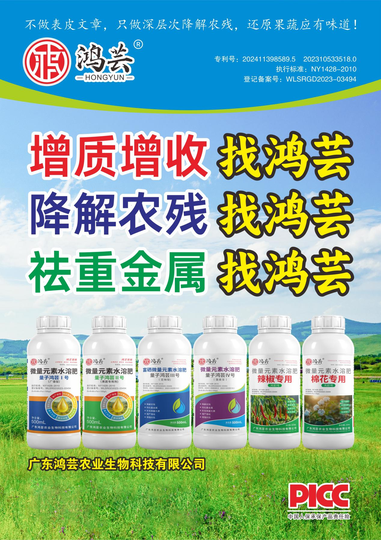 本次广东鸿芸农业生物科技有限公司旗下鸿芸系列产品,顺利通过中国人保审核,为企业全线产品承保产品责任险,标志着广东鸿芸农业生物科技有限公司为消费者提供产品安全保障的决心。