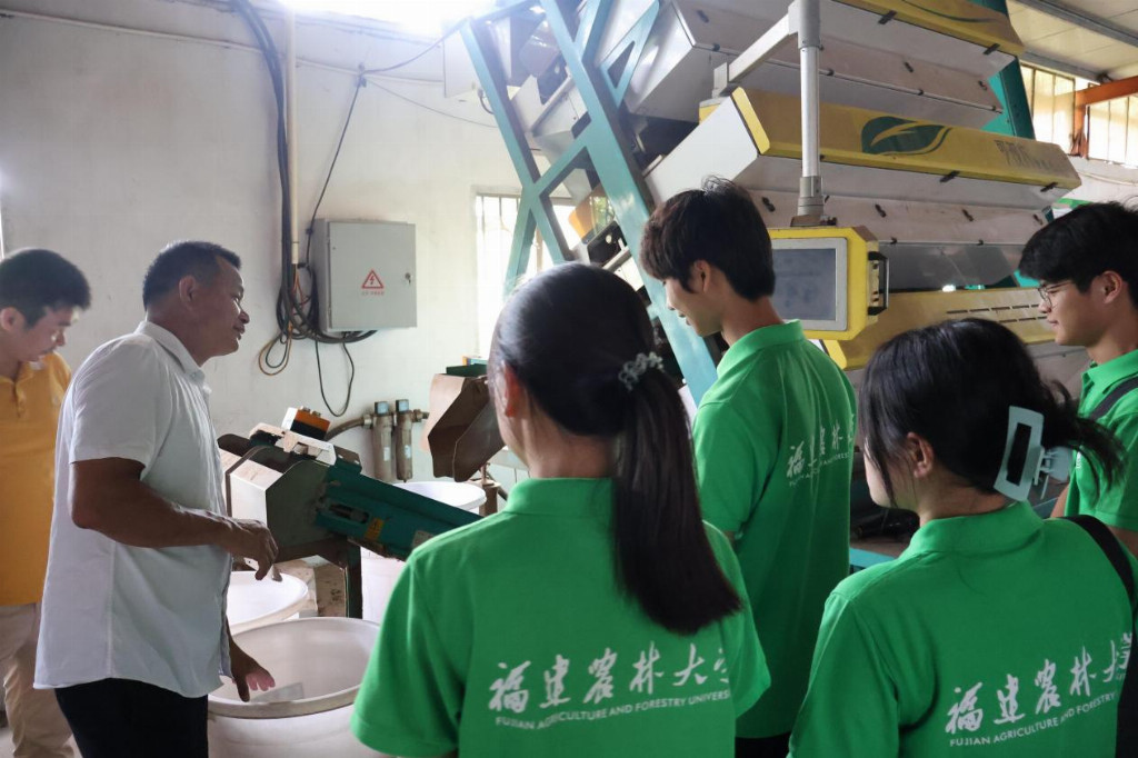 最让队员们惊叹的是传统与现代的融合:既有需整夜值守的手工摇青工艺,也有预设程序后自动运行的智能摇青机;普通口粮茶用机械精制筛选(分离茶叶、黄片、茶梗),高端茶则雇人手工挑拣(成本达每斤几十元)。“手工采一斤成本3元,机械采只要几毛,但我们为了品质,还是坚持手工!”这让实践团对“匠心”有了更深体会。