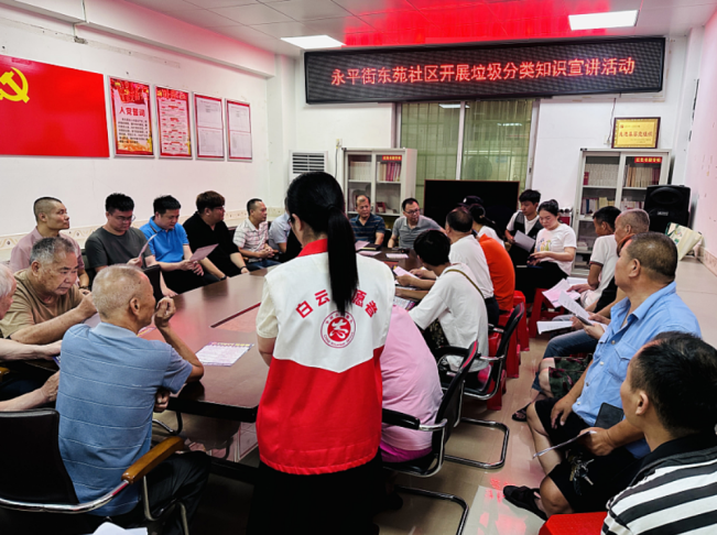东苑社区联合钟一、钟二经济社召开垃圾分类知识宣讲暨栋长制推进会,召集楼栋长、居民代表、党员等50余人参与。会议立足社区实际,进一步明确垃圾分类处理模式,并通过案例讲解、政策解读等方式,强化栋长队伍的分类知识储备。社区为每位栋长发放宣传手册,要求其发挥“桥梁”作用,指导住户规范分类投放。楼栋长张阿姨说:“我们将挨家挨户宣传,把分类知识送到居民心坎上。”