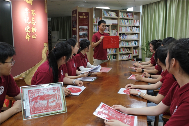 图为实践团成员在参观中欣赏并交流当涂剪纸作品。农心愉 供图