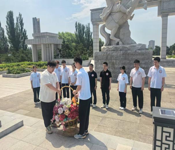 7月7日,正值七七事变纪念日,警钟长鸣。实践团首站抵达四平烈士陵园,园内松柏苍翠,氛围肃穆。队员们怀着崇敬与沉痛的心情,向马仁兴烈士墓敬献花圈,寄托无尽哀思。随后,队员在瞻仰广场深入了解众多无名烈士为国家和人民的解放事业英勇献身的故事。这让学生们深刻领悟到弘扬革命精神的重要性,也愈发坚定了他们传承红色基因、勇担时代使命的信念。随后,实践团来到四平市烈士纪念塔。队员们静静伫立,聆听革命先辈的英勇事迹,缅怀先烈不朽功勋。队员们深切感受到,如今的和平与繁荣是无数先烈用生命和鲜血换来的。