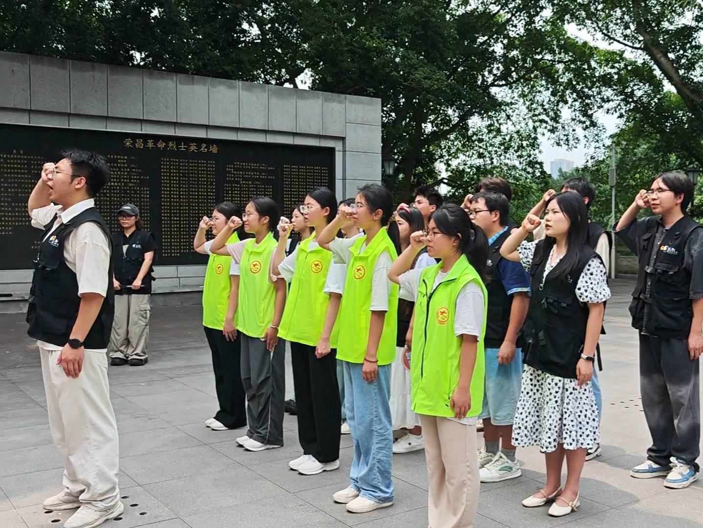 午后,怀着崇高的敬意,重庆移通学院的宣传团全体成员与社区志愿者们来到庄严肃穆的荣昌烈士纪念碑前。在镌刻着英烈不朽功勋的丰碑下,团队成员与社区志愿者们庄严举行了重温入党誓词与入团誓词的仪式。当成员们高举右拳,字字铿锵地诵读入党誓词,是对初心使命的回溯与确认,在庄严的仪式感中唤醒心中的赤诚与激情。活动期间,团队成员采访了同在现场参与纪念活动的学生们。年轻身影后,是巍峨的纪念碑,构成一幅关于责任接续与使命担当的动人画面。