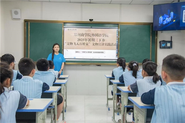 为切实提升国家文化软实力与中华文化影响力,引导和帮助青年在社会实践课堂中“受教育、长才干、做贡献”。6月27日至7月3日,郑州商学院外语学院组建中华文化宣讲团,带领学生开展主题为“讲述文物故事,传承非遗文化”的暑期“三下乡”社会实践。宣讲团成员以青春为笔,以专业为墨,奋力搭建中华文化瑰宝与世界沟通的桥梁,以实际行动加强文化遗产保护传承,弘扬中华优秀传统文化。