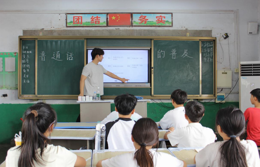 实践队队员为孩子们开展了丰富多彩的课程,不仅有语文、数学、英语的主流课程,还有手工、美术、历史等特色课程。同时,实践队队员将普通话推广课程也带到了课堂上,想借此提高孩子们的文化素质。