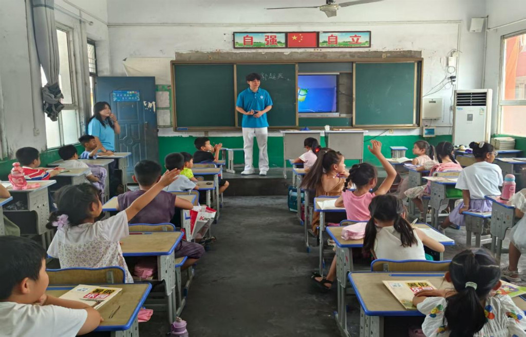 随着支教工作的正式展开,实践队员们纷纷走进各自负责的班级,开始了与孩子们的深入交流和教学。不仅讲解自己所负责的课程,而且在班级辅导作业的时间里,深入班级,为同学们答疑解惑。放学时,实践队队员组织孩子们排队,井然有序地离开学校。