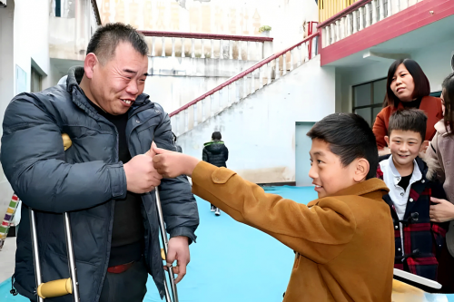 那句承诺,成了八年求学路的船票。每天清晨,父亲宽厚的脊背就是李文金的校车。冬天霜结在父亲的眉毛上,夏天汗浸透他的粗布褂子,父子俩的影子在村路上被晨光拉得很长。教室里,他的双拐总靠在墙角,“李瘸子”的绰号像扔过来的石子,他从不接话,只把铅笔握得更紧。煤油灯下,课本被翻得卷了边,算术题演算了一遍又一遍,直到油灯结出灯花。“每次考试我都是第一!”李文金摩挲着膝盖上的老茧,眼里闪着光,“他们说我不行,我偏要行给他们看。”