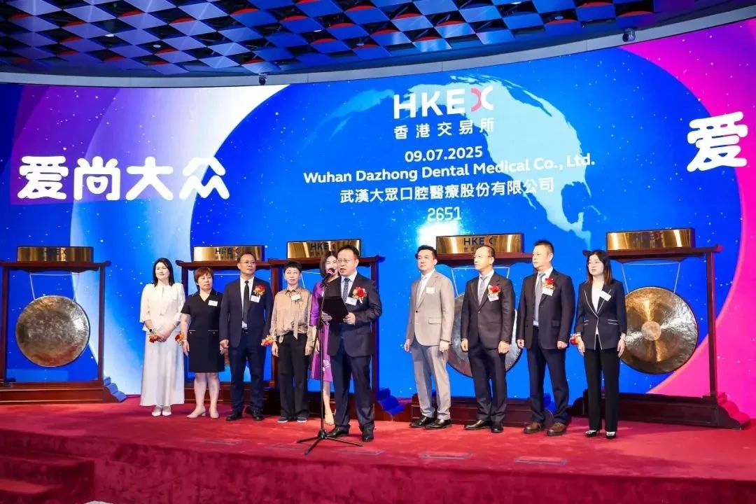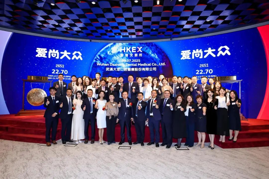 2025年7月9日,华中地区领先的民营口腔医疗服务提供商——武汉大众口腔医疗股份有限公司(股票代码 2651.HK)正式在香港联合交易所主板挂牌上市,开盘表现强劲,市场反响热烈。大众口腔股东、董事、高管、员工代表,保荐人海通国际、中介机构共同见证了这一激动人心的时刻,现场掌声雷动、气氛热烈。