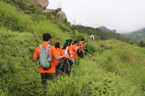 在徒步过程中,队员们不仅捡拾林间垃圾,还清理草地杂草,感受人与自然和谐共生的重要意义。当日下午,实践队师生沿上方山林路线开展“Plogging”活动。队员们携带垃圾袋、夹子等工具,分工清理林间垃圾,塑料瓶、食品包装袋、废弃纸箱等被逐一捡拾,缠绕在灌木上的塑料袋也被小心摘除,同时顺手拔除了影响植被生长的杂草。