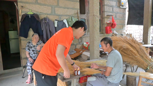 随后,实践队对上凤门垄村老书记雷德宝进行访谈。雷书记介绍,村里近年投入800多万元完善道路、建设文化活动中心等基础设施,但受人口流失、地理分散影响,发展仍有阻力。此前尝试的茶叶种植,因品牌缺失、销售渠道受限及野猪破坏等问题,未能形成规模效益,不少农户已改种其他作物。他提到,当地茶叶品相尚可,但缺乏技术指导导致口感不稳定,难以形成品牌竞争力,希望能获得高校的苗木技术支持,推动优质种植试点,并结合文旅融合打造生态产业链,吸引年轻人返乡创业。队员们认真记录相关情况,就茶叶种植规模、野猪破坏频率等细节进行询问,并结合专业背景,初步提出可协助开展口感稳定性分析、探索产地溯源与统一包装等建议。