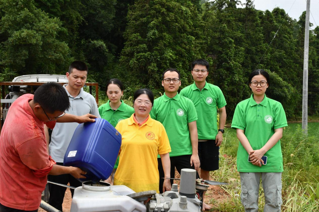 在夏茂镇梨树村的300余亩连片水稻田里,一架无人机正低空掠过湿润的稻田水面,均匀播撒着一种特殊的“肥料”——杨桂娣教授科研团队自主研制的微生物菌剂。这一农业现代化手段,不仅实现了菌剂的精准、高效投放,更成为当地推广环境友好型农资的重要抓手。