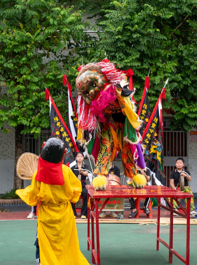 明末清初,时局动荡中福建“呷嘴狮”传入村中;清末村民吴圣裕再引入五华“猴子狮”,两种狮艺历经百年碰撞,最终融合形成今日“武狮一体、庄谐并重”的河东甘坑青狮特色。
