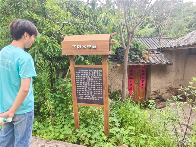 团队成员刘书宏观察水电站标识牌 供图:张扬