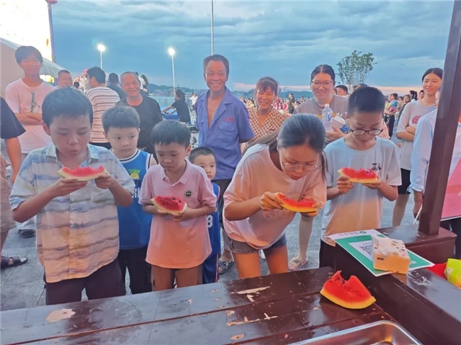 疯狂吃瓜挑战赛:计时20秒的“速度与激情”!参赛者埋头苦“吃”,汁水飞溅,只为争当“吃瓜王”!挑战成功者喜提大西瓜,失败者也乐呵呵地购买解暑,现场气氛热烈非凡。