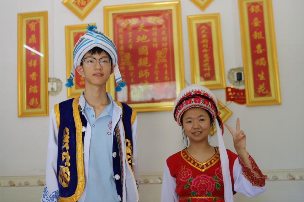 图为实践团成员体验白族服装
