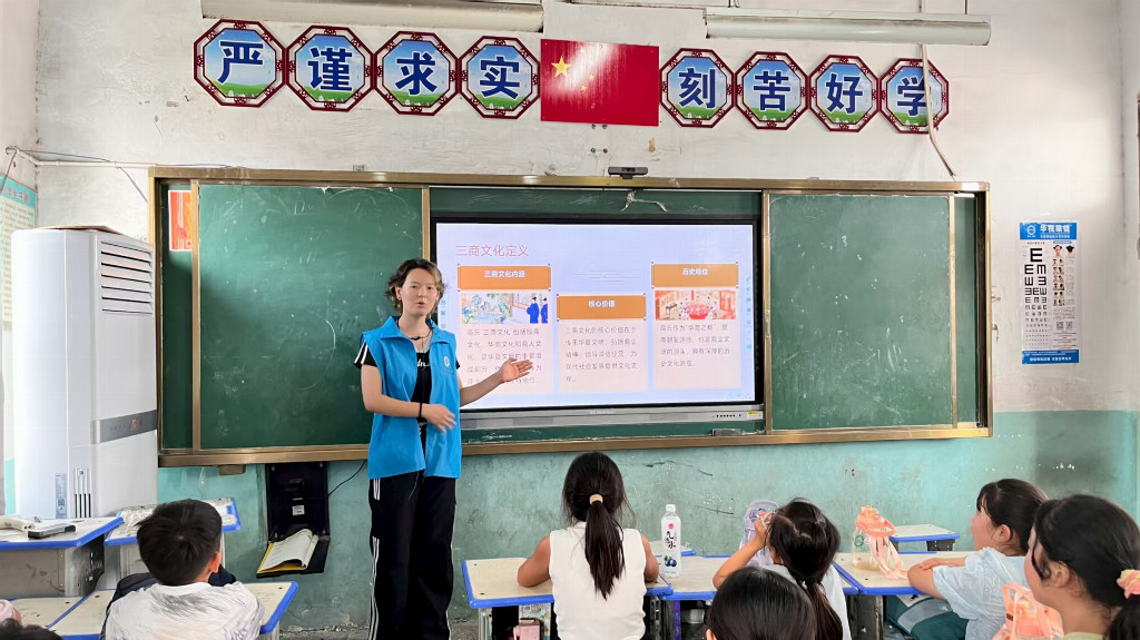 在课程设置方面,实践队员们结合各自技能特点,精心设计了树叶拼贴、安全教育、三商文化等特色课程。这些活动,不仅让同学们在趣味互动中接触科学知识、安全常识与历史文化,而且以高校学子的专业所长搭建起城乡教育资源连接的桥梁。