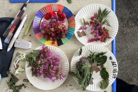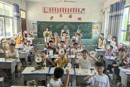 在树叶拼贴的创意课堂上,队员们带领孩子们走出教室。在与大自然的亲密接触中,孩子们小心翼翼地拾起形状各异的梧桐叶,他们对自然与美的感知被悄然唤醒。回到教室里,队员们鼓励孩子们充分发挥想象力,用采集来的花叶,在纸盘上创作富于想象的艺术品。这场美术实践不仅让同学们亲近了自然,而且通过实践将自然观察与美学教育有机融合,在提升动手能力的同时,培养了孩子们对自然之美、生活之美的感知力与创造力,为支教课堂注入了生动的美育内涵。