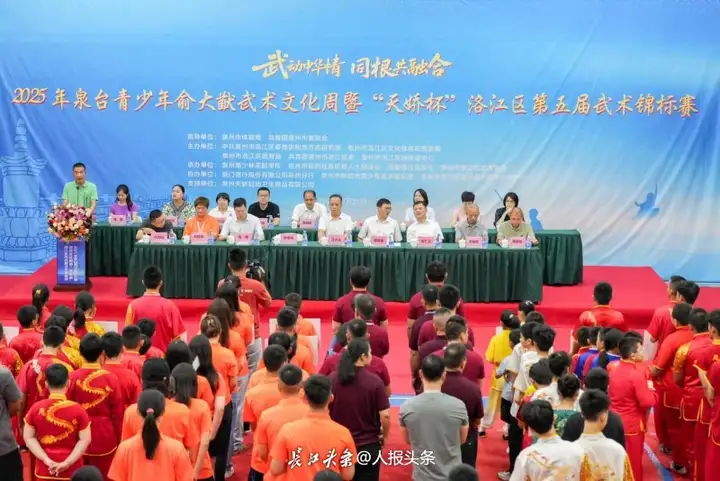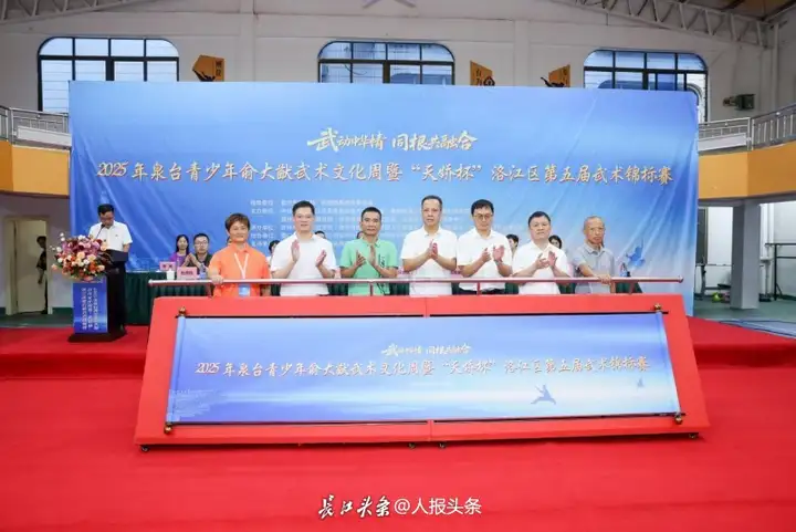 7月21日上午,2025年泉台青少年俞大猷武术文化周暨“天娇杯”洛江区第五届武术锦标赛在泉州南少林实验学校启动。市体育局局长汪水永先生,洛江区委常委、宣传部部长张荣伟先生,洛江区人民政府副区长杜仁义先生等领导、嘉宾、运动员等两百多名齐聚现场,泉台青少年以武为媒,共叙同根情谊。