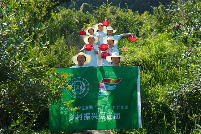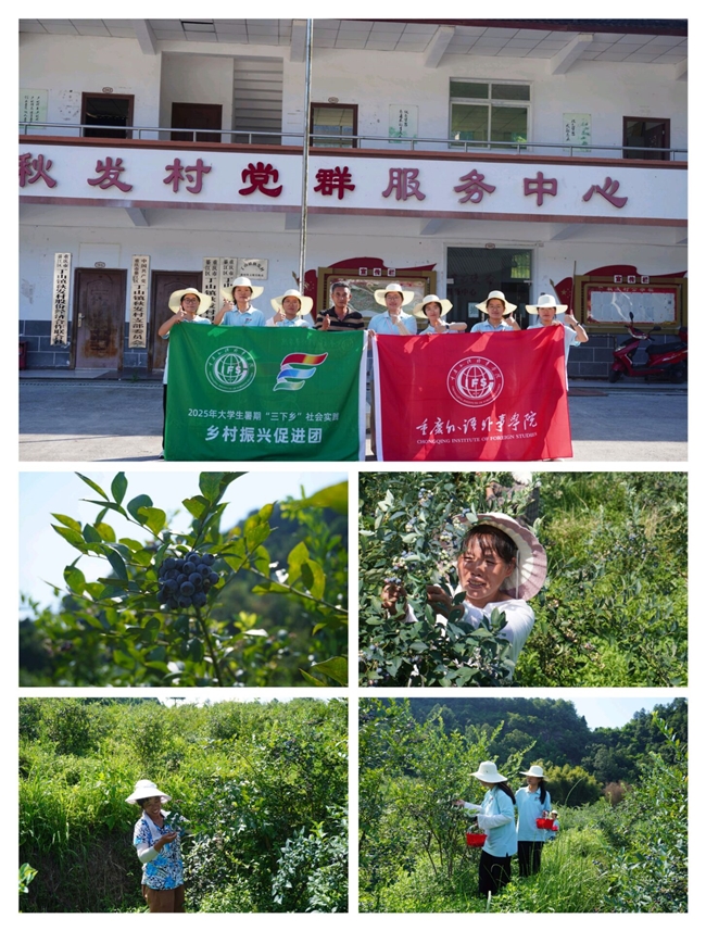 午后,促进团探访秋发村蓝莓产业基地。200亩基地(投产约100亩)里,蓝莓果实饱满甘甜,富含花青素、维生素C和膳食纤维,品质优良。秋发村蓝莓采摘季已持续3年,年产量约4万斤,作为秋发村支柱产业,为乡村振兴提供支撑。据了解,基地可容纳约1000人同时采摘,辐射周边区县,吸引渝贵川等多地游客,带动当地消费与村民就业。但也面临销售渠道窄、鲜果易损耗以及便利店、餐饮店和观光接驳车等基础配套服务设施不完善等实际困难。促进团成员认真记录下这些问题,计划将调研结果整理反馈,为特色蓝莓产业发展提供参考。
