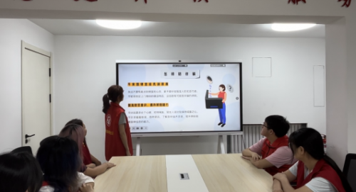 图:“花径便民小队”志愿队全员参加了社区工作人员组织的反诈培训
